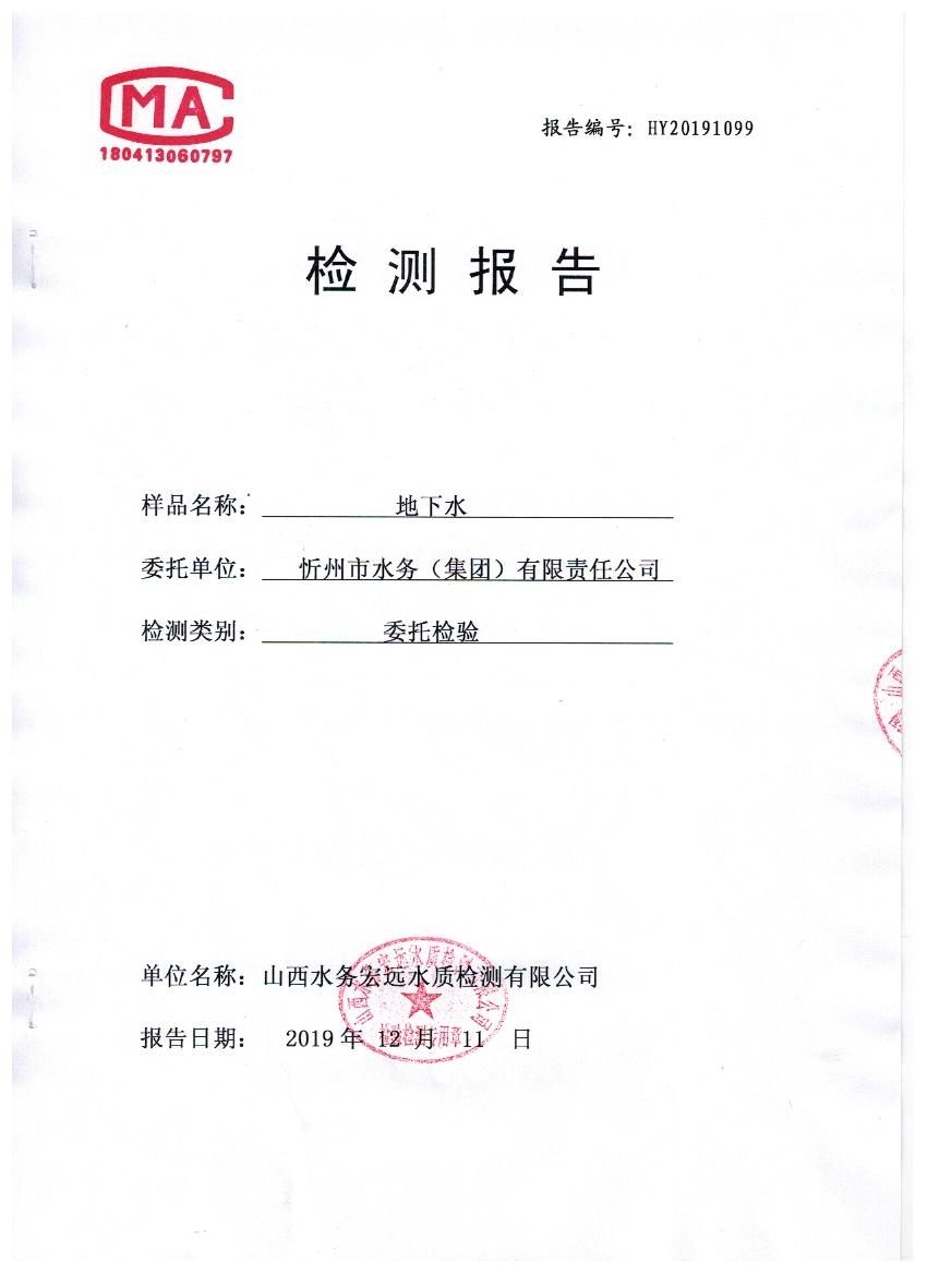 2019年忻州城區(qū)公共供水南水廠、三水廠水源水39項地下水水質全分析