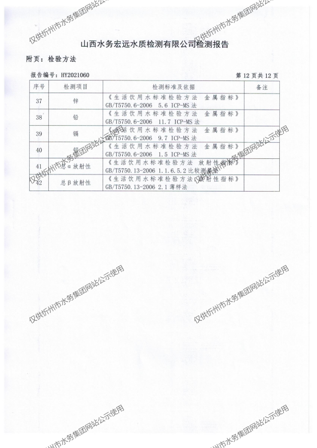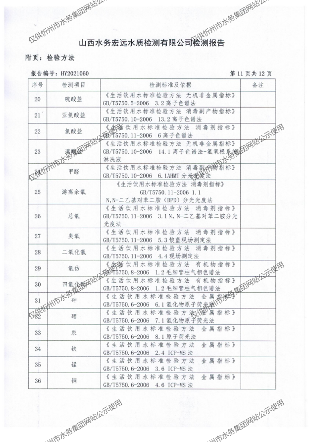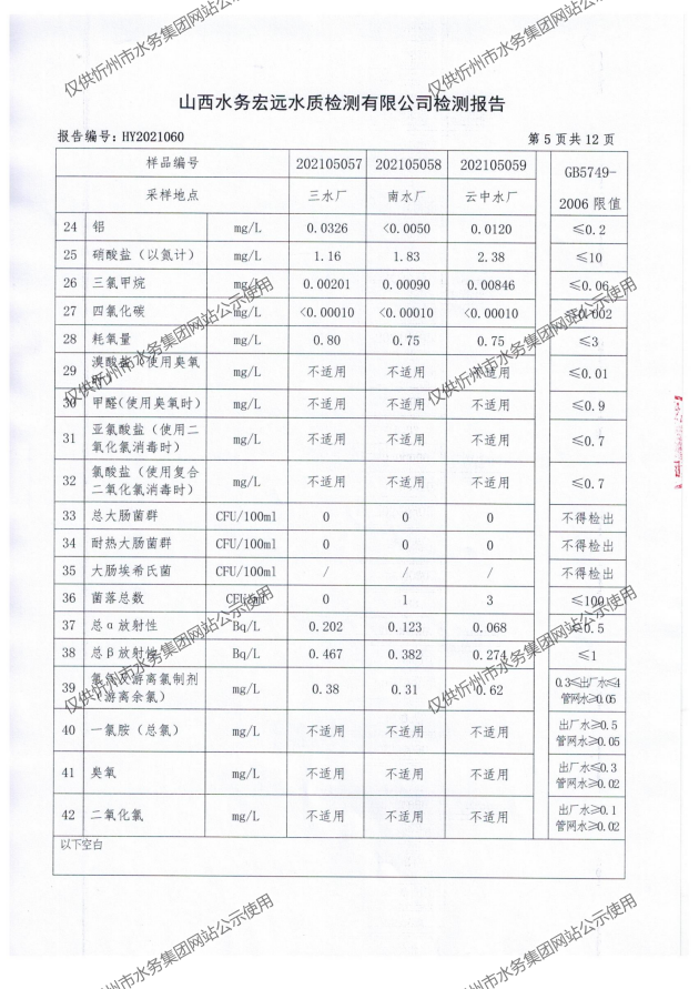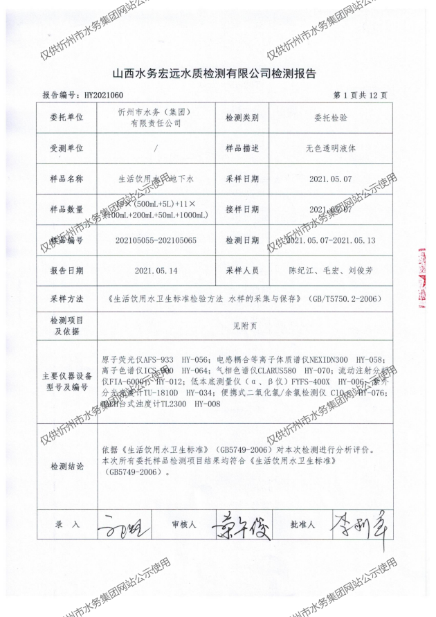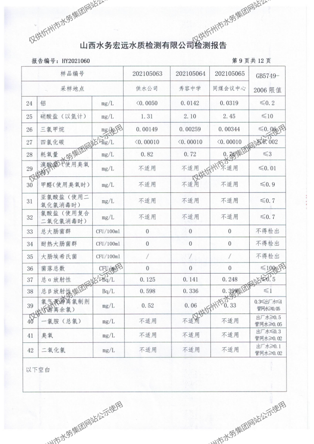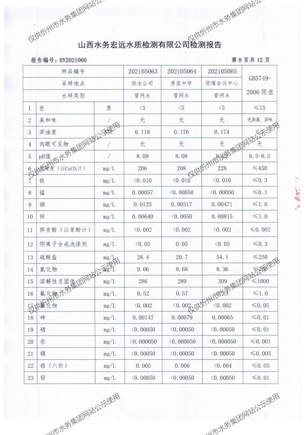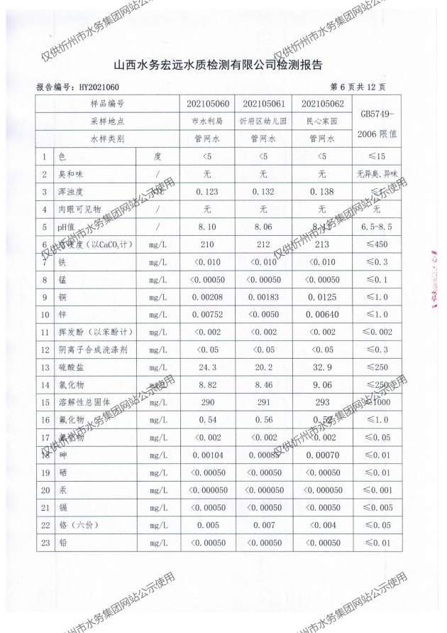 忻州城區(qū)公共供水水源水、出廠水、管網(wǎng)水、管網(wǎng)末梢水2021年5月份水質(zhì)信息公示